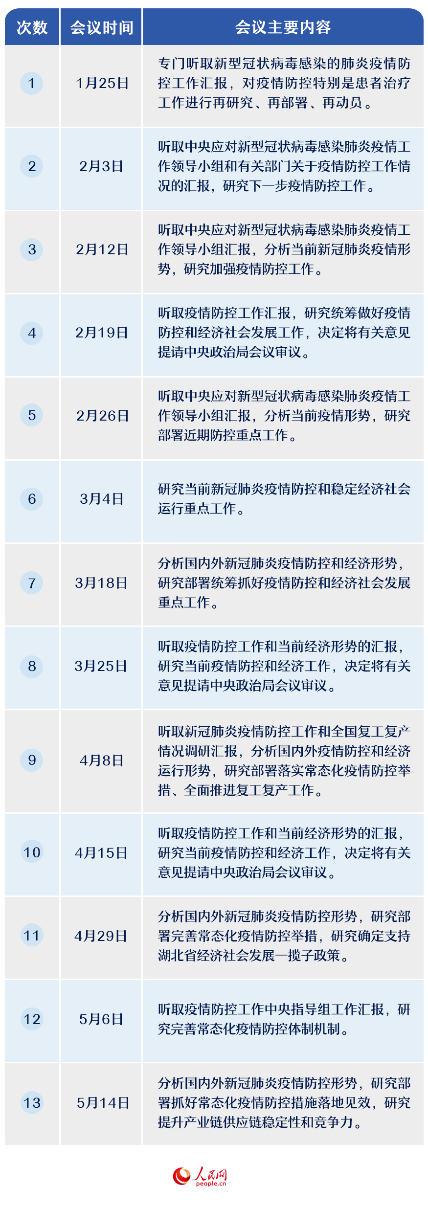 在这13次会议中,研判疫情形势、抓好疫情防控贯穿始终。